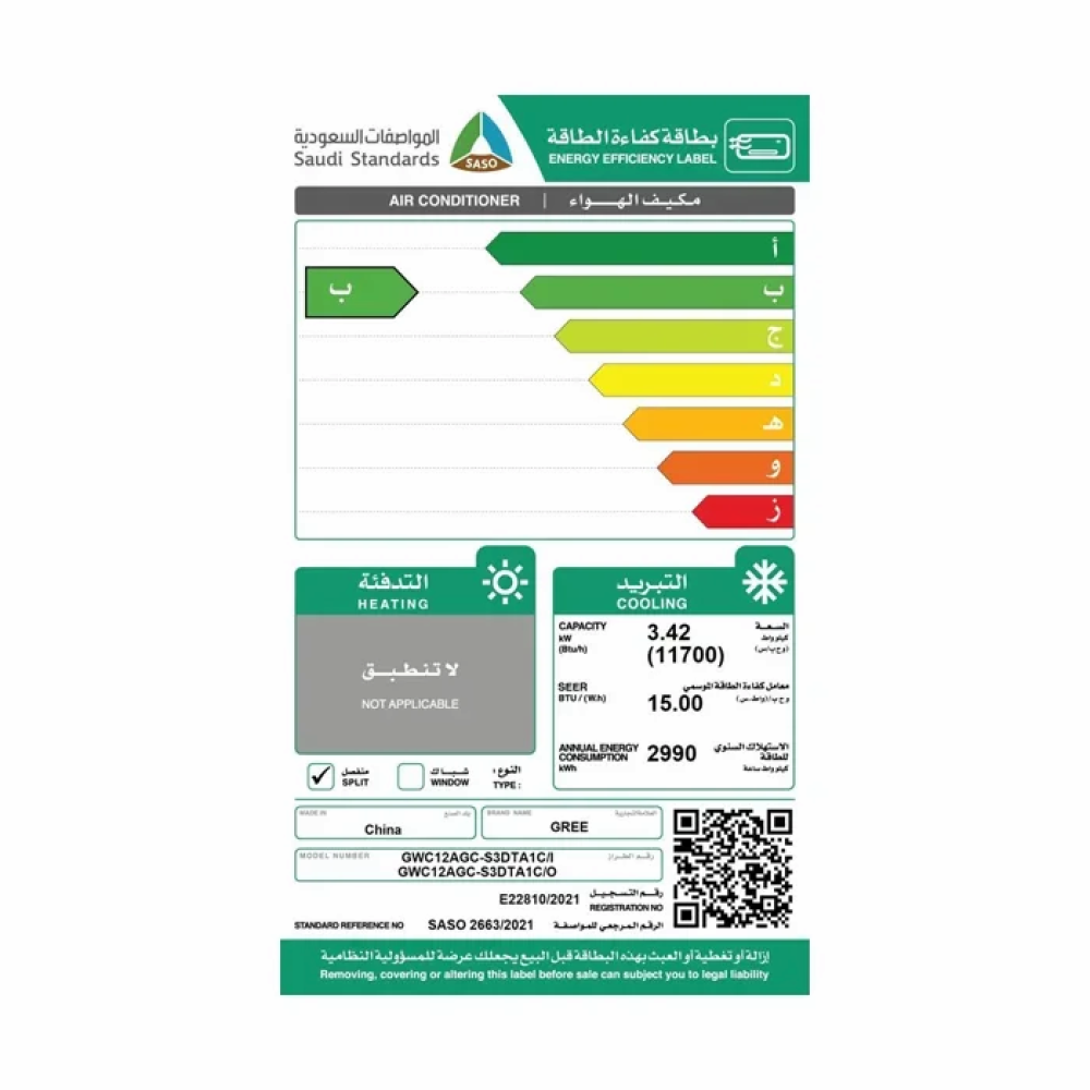 مواصفات مكيف سبليت 12 وحدة جري بولار – بارد :